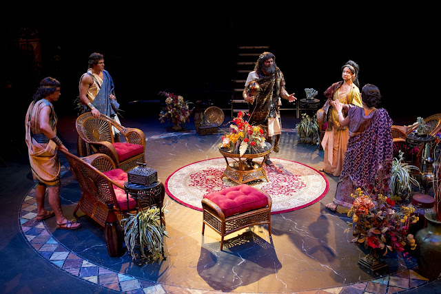 We had just done Oedipus the summer before and Hyrum suggested that he'd like to use costumes from that production to clothe the lesser characters which meant we would build all of Phèdre's costumes, all of Theseus', all of Hippolytus and all of Aricia's costumes. The rest I would use stock and accessorize differently than they had been used before.
